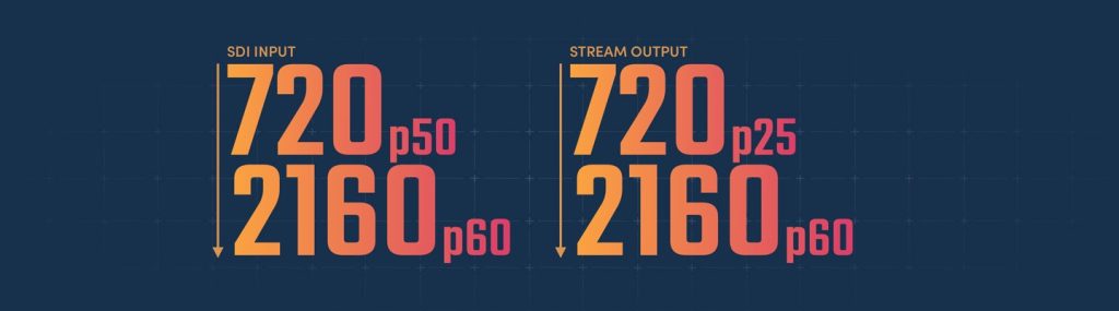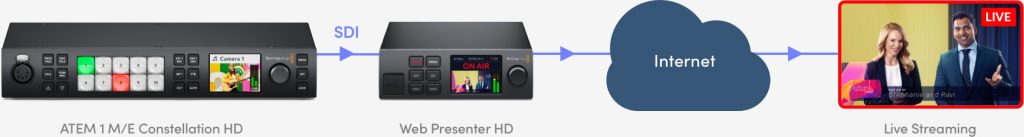 Blackmagic Web Presenter menyertakan input 12G‑SDI dengan dukungan untuk semua format HD dan Ultra HD hingga 2160p60. Output loop 12G‑SDI disertakan sehingga Anda dapat memutar video melalui lebih dari satu penyaji web, sehingga Anda dapat melakukan streaming ke beberapa layanan. Blackmagic Web Presenter menghadirkan teknologi konversi Teranex pada input SDI untuk menghasilkan video yang tampak sangat bersih. Blackmagic Web Presenter mengambil sinyal input HD atau Ultra HD yang masuk dan secara otomatis mengonversikannya ke kualitas tinggi, kecepatan data rendah 1080p HD atau resolusi tinggi 2160p60 Ultra HD tergantung pada model, yang kemudian dikirim ke encoder hardware untuk streaming. Semua ini berarti Anda dapat menggunakan sumber HD atau Ultra HD apa pun untuk streaming!