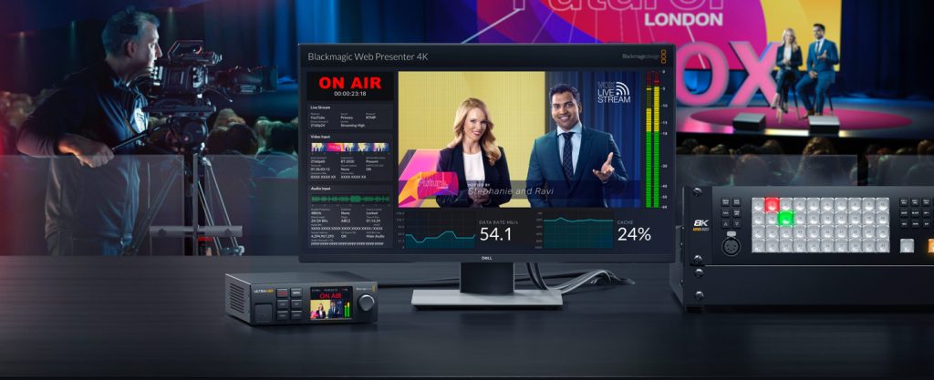 Blackmagic Web Presenter mendukung platform streaming paling populer. Ditambah lagi, mesin streaming perangkat keras bawaan telah dirancang untuk streaming langsung dengan kualitas siaran profesional. Artinya, Anda mendapatkan solusi mandiri untuk live streaming yang berfungsi tanpa kehilangan frame. Anda hanya perlu menghubungkannya ke internet! Penyiapannya mudah, karena perangkat lunak Web Presenter Utility memungkinkan Anda memilih platform streaming dan memperbarui kunci streaming. Utilitas ini berfungsi di Mac dan Windows dan terhubung langsung melalui USB atau jarak jauh melalui Ethernet. Jika Anda tertarik secara teknis, Anda bahkan dapat memperbarui file setelan XML secara manual untuk mengubah setelan tertentu atau menambahkan platform streaming baru.
