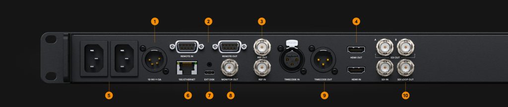 Dek mini merekam file H.264, ProRes, atau DNxHD ke kartu SD/UHS-II atau disk USB eksternal dalam format SD/HD hingga 1080p60. Termasuk generator kode waktu dan referensi, input/output 3G-SDI, dan output HDMI.