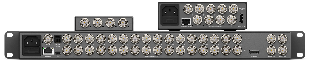 Blackmagic MultiViews adalah multiviewer Ultra HD asli pertama di dunia yang memungkinkan Anda memantau sumber video SDI yang sepenuhnya independen pada satu layar HD atau Ultra HD! Dengan sinkronisasi ulang frame penuh pada setiap input, Anda dapat memantau kombinasi format dan kecepatan frame SD, HD, dan Ultra HD secara bersamaan, di layar yang sama. Saat digunakan dengan televisi Ultra HD, tampilan quad split memberi Anda empat monitor HD 1080 resolusi penuh dalam satu layar! Anda juga mendapatkan pengukur audio di layar, label tampilan khusus, dan masih banyak lagi!