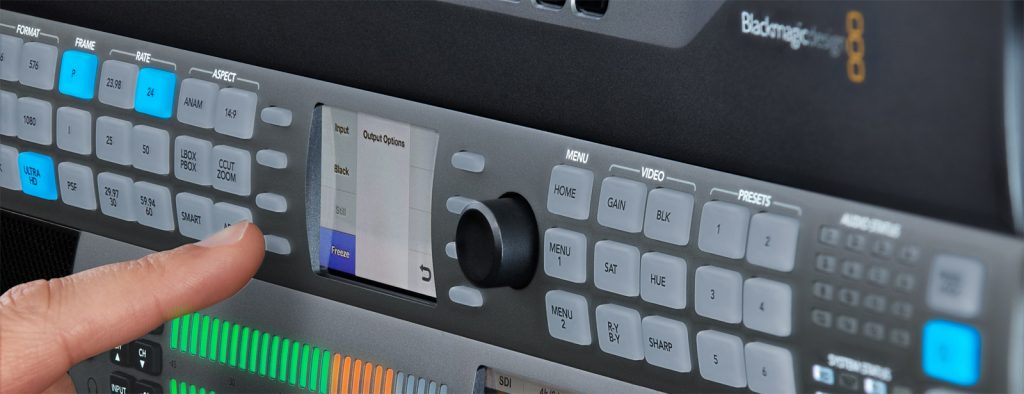 Konverter Teranex dapat melakukan konversi naik dan turun antara NTSC atau PAL SD, 720 atau 1080 HD, dan Ultra HD. Mereka menampilkan berbagai pilihan rasio aspek dan algoritma penskalaan kualitas optik real-time yang menyimulasikan zoom optik. Pemrosesan subpiksel dan filter diagonal multiarah juga digunakan untuk menghilangkan “jaggies”. Artinya, Anda mendapatkan konversi dengan tampilan paling rapi dan gambar tetap mempertahankan detail dan kejelasan sebanyak mungkin!